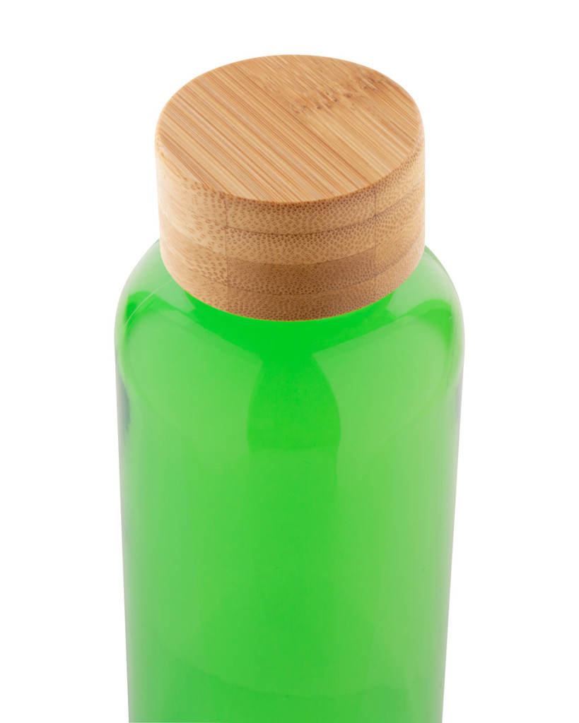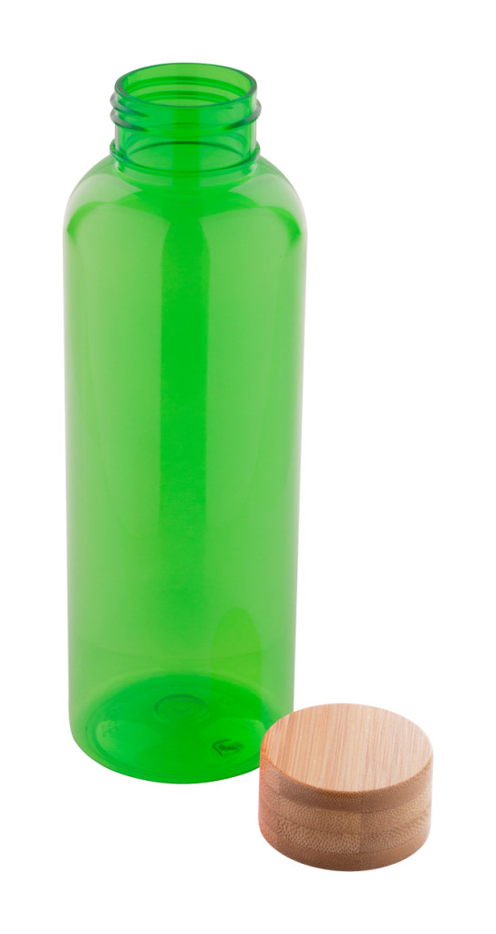 BPA-mentes RPET műanyag kulacs bambusz kupakkal, 500 ml. Nem alkalmas szénsavas italok tárolására.