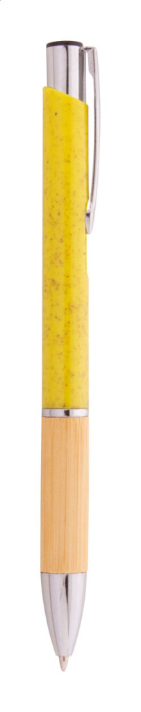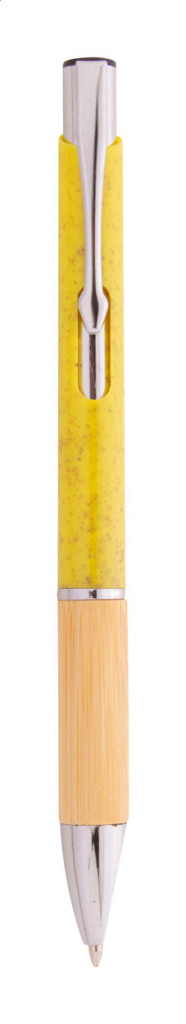 Környezetbarát búzaszalma műanyag golyóstoll bambusz markolattal és fém részekkel. Kék tollbetéttel szállítjuk.
