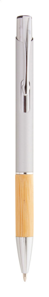 Alumínium golyóstoll bambusz markolattal, gumírozott felülettel és kék tollbetéttel. Speciális bevonattal rendelkezik, amely különlegesen fényessé teszi a gravírozott emblémát.