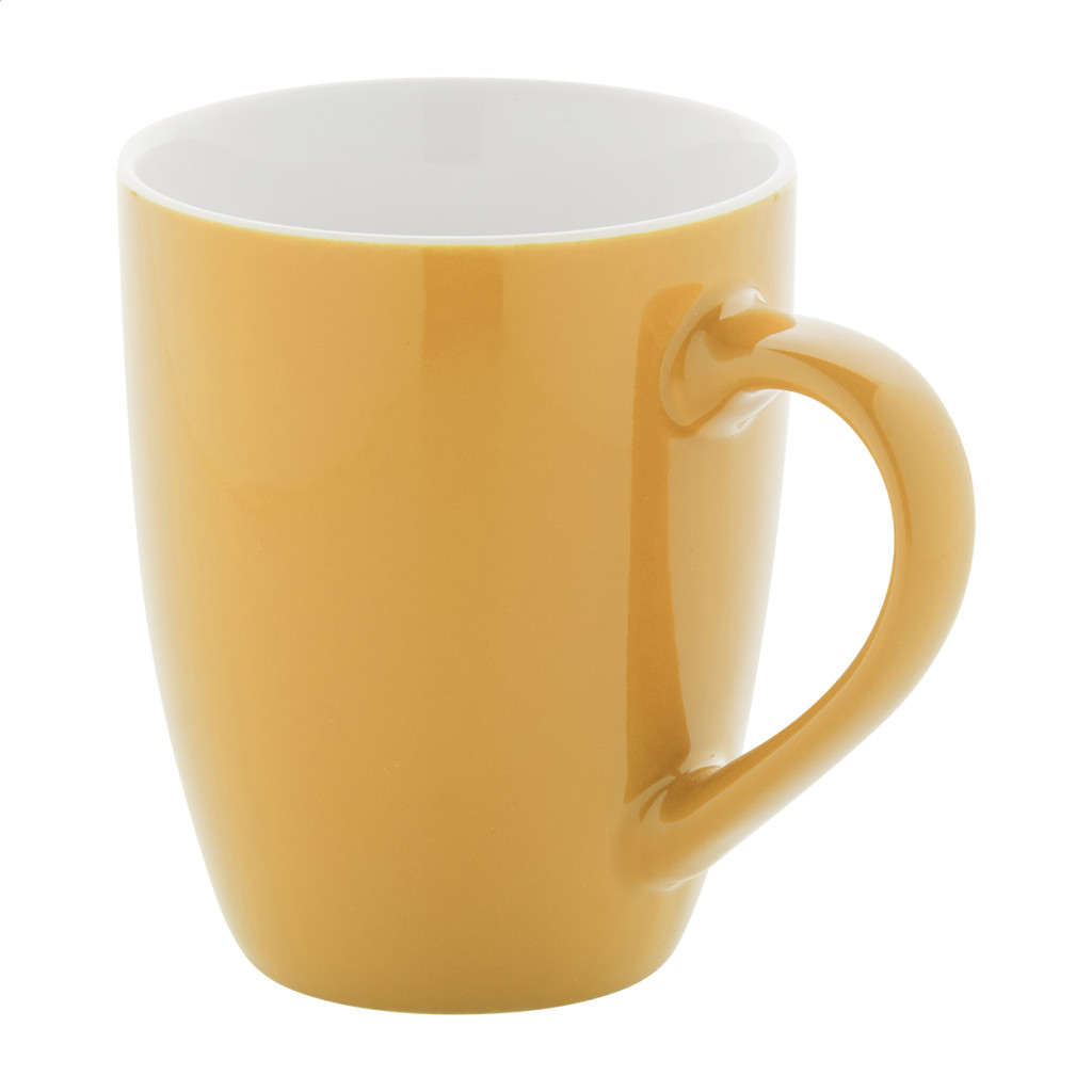 Magas minőségű színes kerámia bögre fehér belső résszel, 340 ml. Kraft papír dobozban szállítjuk.