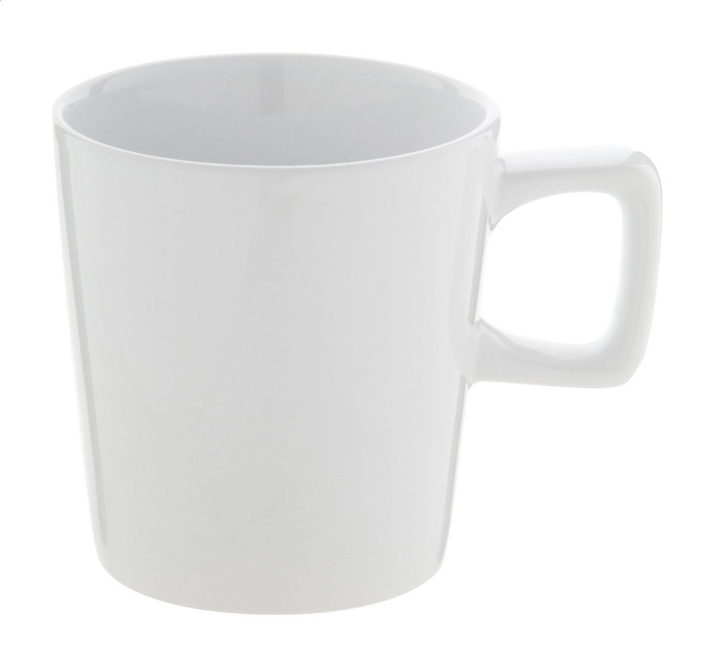 Magas minőségű kerámia bögre szögletes fogantyúval. 280 ml. Kraft papír dobozban.