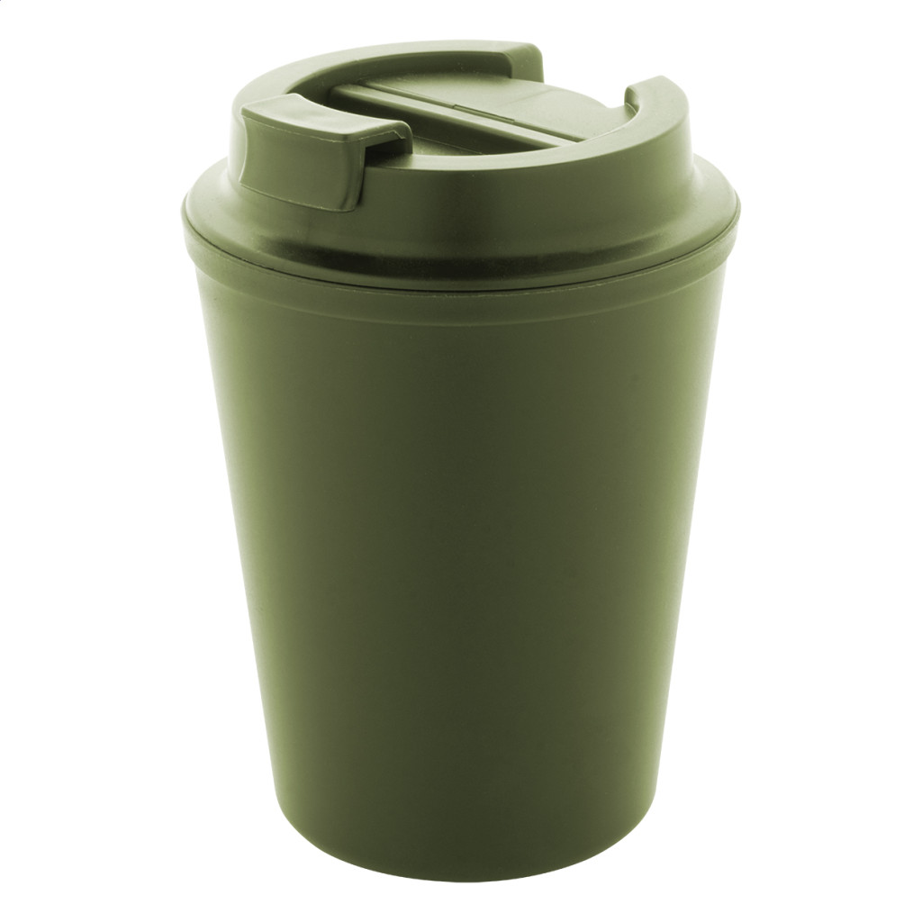 Duplafalú, újrahasznosított PP műanyag szigetelt termo pohár ivófedéllel, 300 ml.