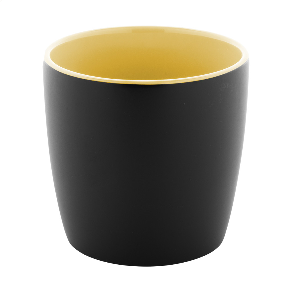 Magas minőségű kerámia bögre matt fekete külsővel és fényes színű belső felülettel, 300 ml. Kraft papír dobozban.