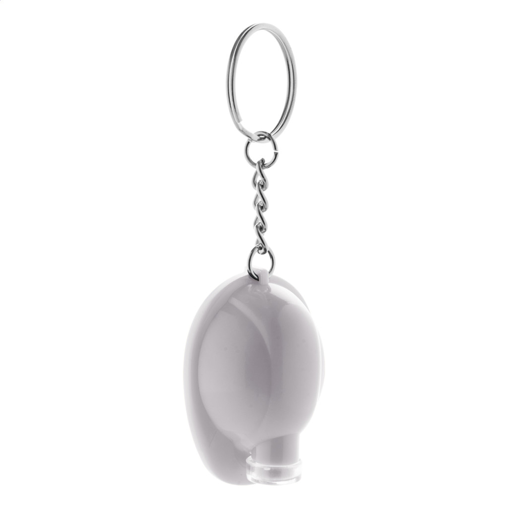 Műanyag, biztonsági sisak formájú kulcstartó LED-es lámpával. Gombelemmel szállítjuk.
