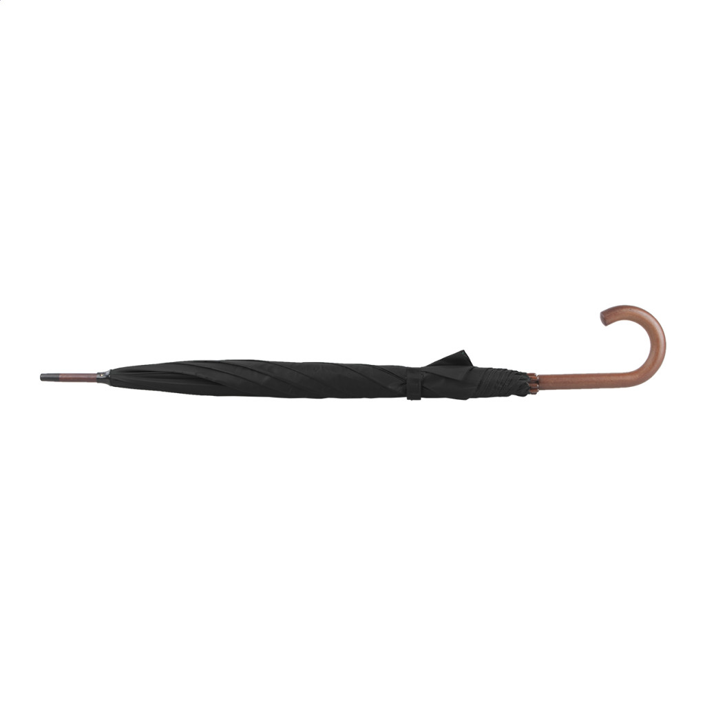 8 paneles automata esernyő fém kiegészítőkkel, fa fogantyúval, nyéllel és végekkel. Anyaga: 190T poliészter.