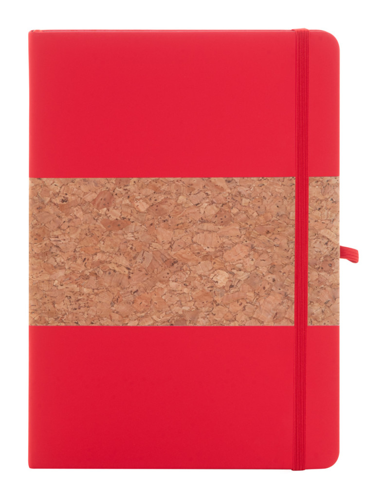 Természetes parafa és újrahasznosított PU bőr borítású jegyzetfüzet hozzáillő színű könyvjelzővel, gumiszalaggal és tolltartóval. 80 vonalas lappal, újrahasznosított papírból. A5 méretű.