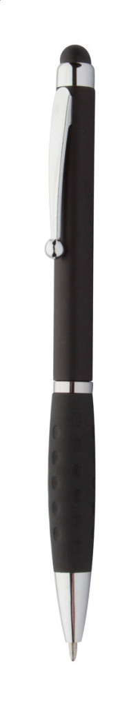 Műanyag, érintőképernyős toll gumimarkolattal és fém hatású kiegészítőkkel. Kék tollbetéttel szállítjuk.