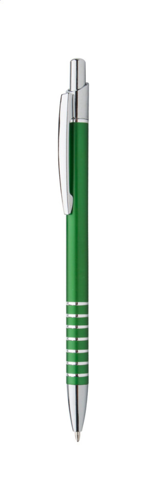 Alumínium golyóstoll, fém klipsszel és króm nyomógombbal. Kék tollbetéttel szállítjuk.