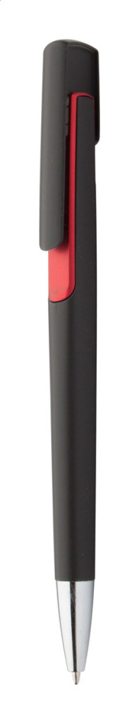 Műanyag golyóstoll színes dekorációval és króm véggel. Kék tollbetéttel szállítjuk.