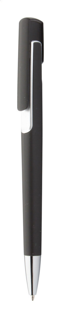 Műanyag golyóstoll színes dekorációval és króm véggel. Kék tollbetéttel szállítjuk.