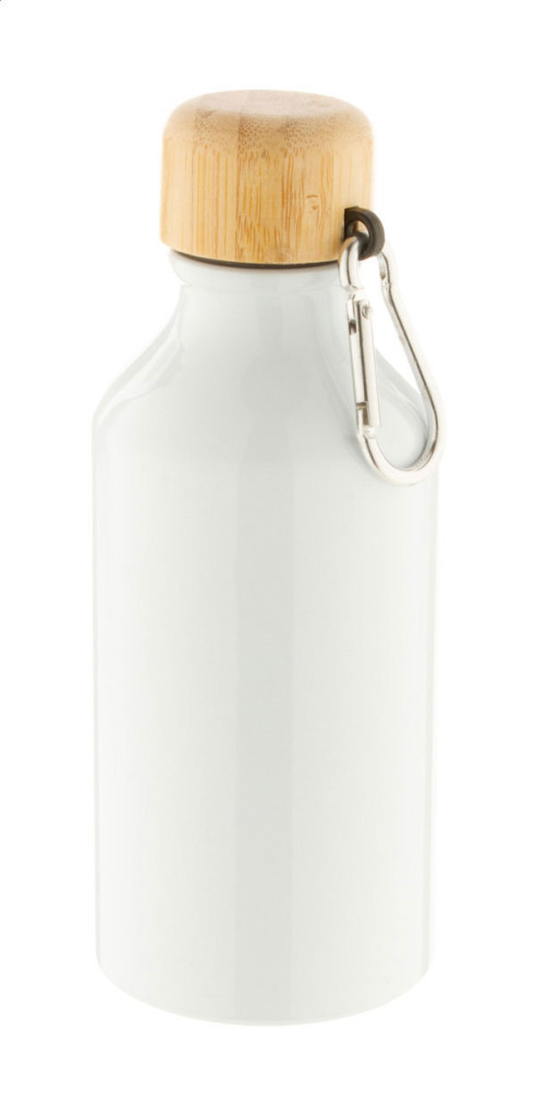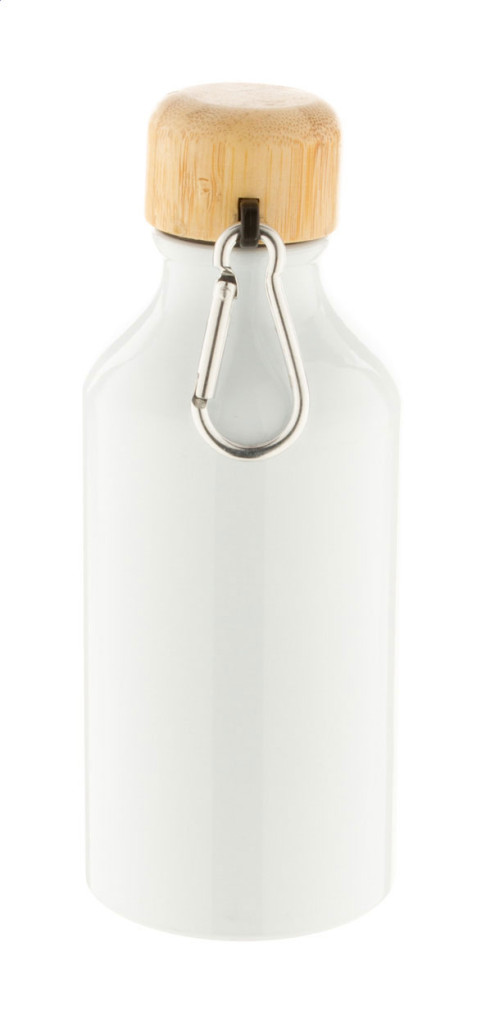 Alumínium kulacs bambusz kupakkal és karabinerrel, 400 ml.
