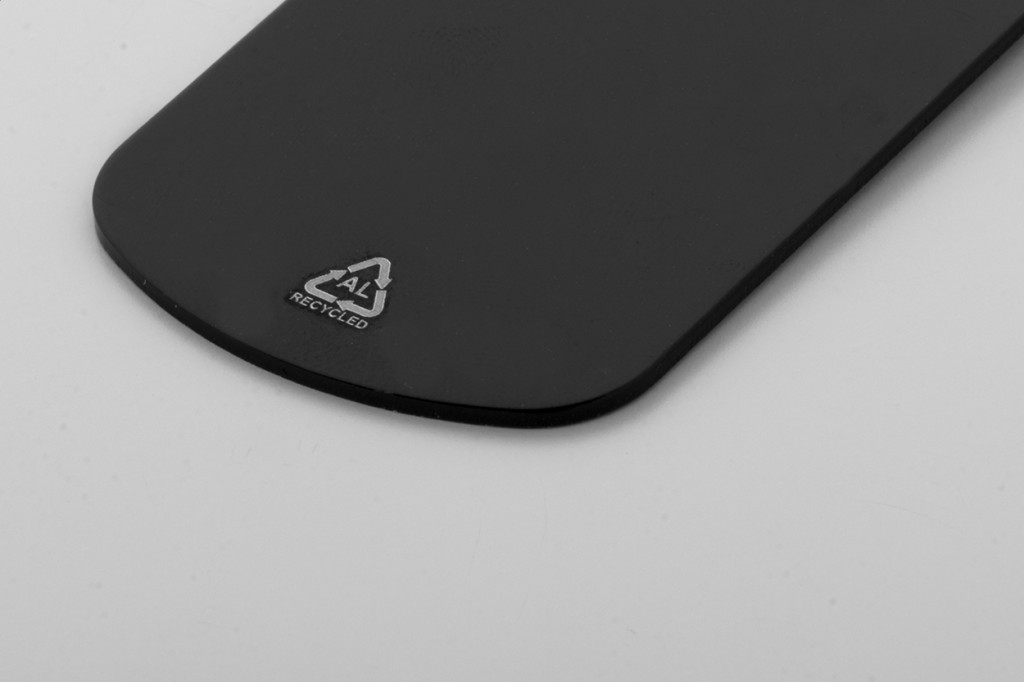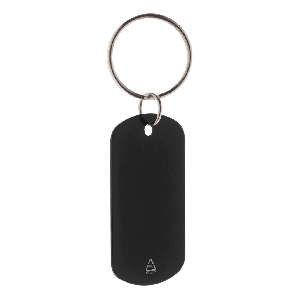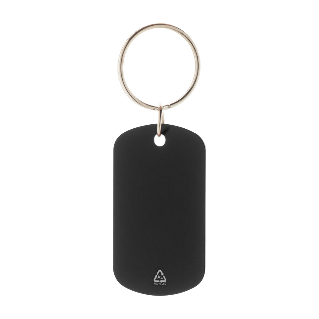 Újrahasznosított alumínium kulcstartó fém karikával.