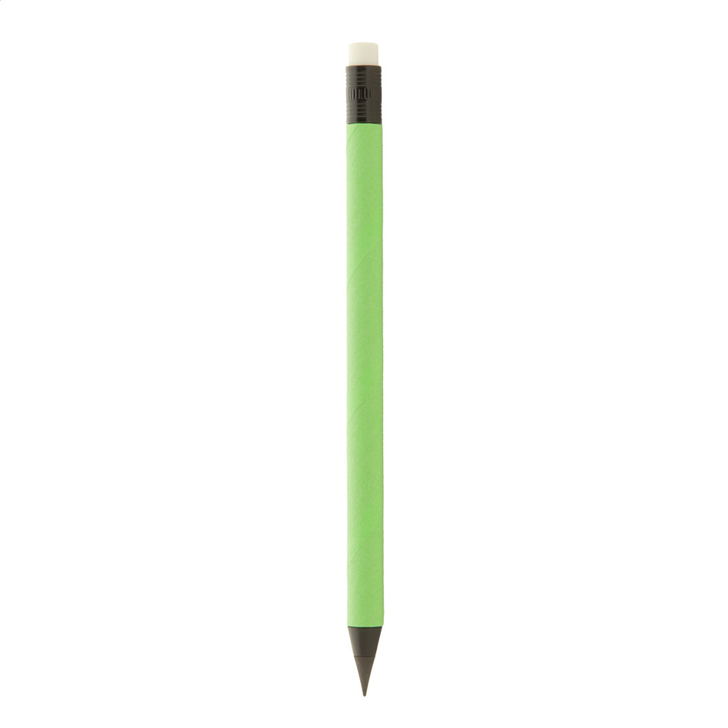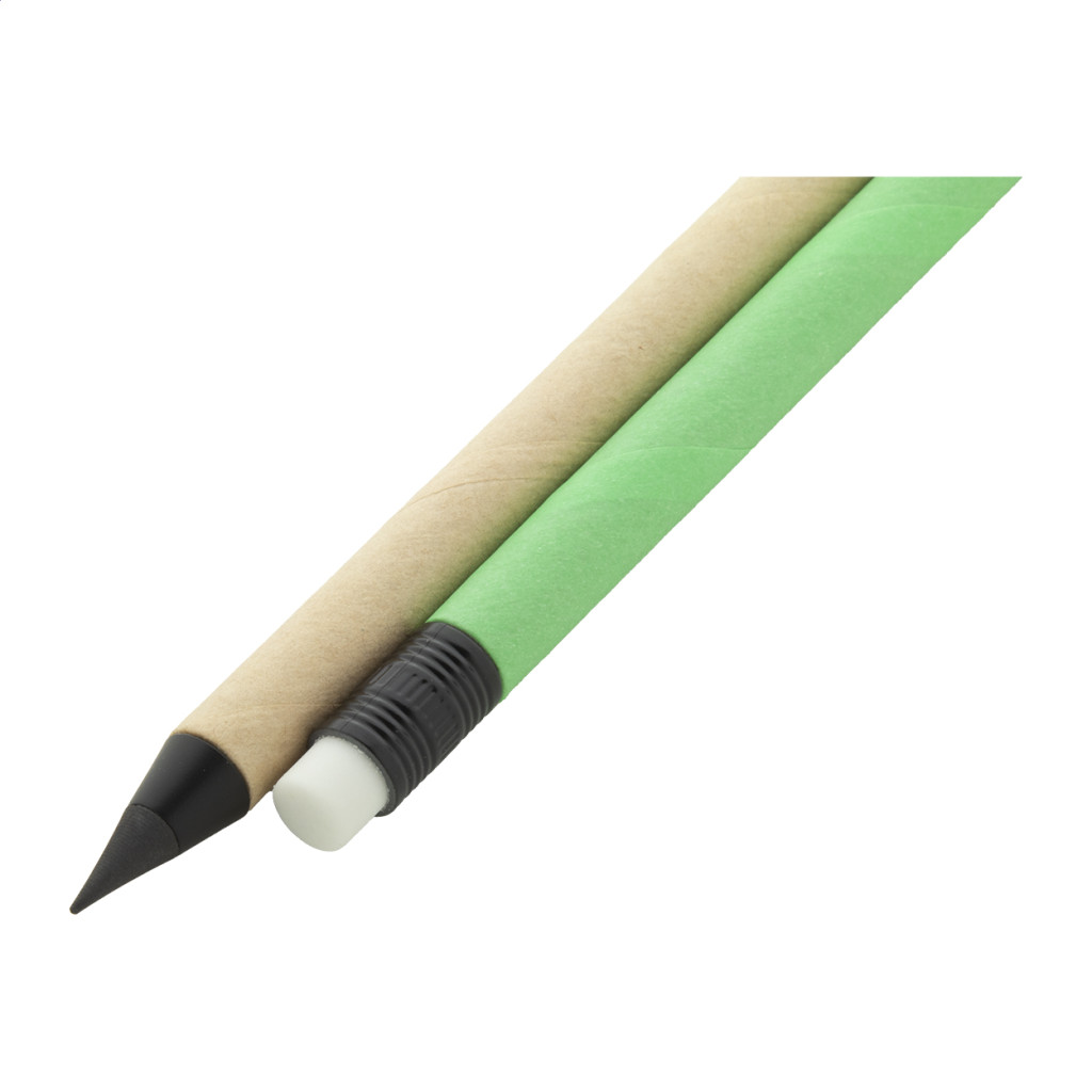 Hosszú élettartamú, újrahasznosított papírból készült tintamentes toll fekete részletekkel és radírral. Fémötvözet heggyel, amely oxidálja a papírt. Ez a toll a ceruzához hasonlóan ír, és radírozható is.