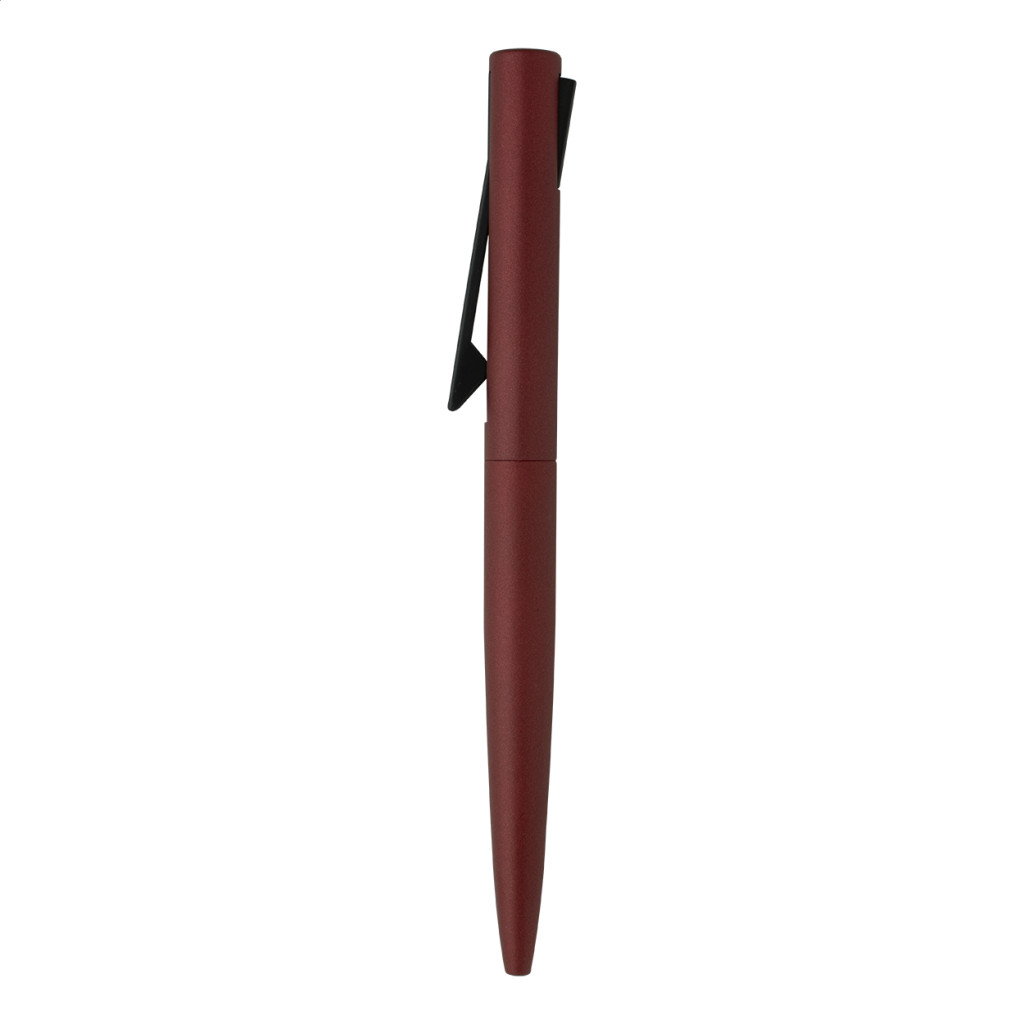 Újrahasznosított alumínium golyóstoll matt fémes színben, újrahasznosított ABS műanyag testtel és speciális klipsszel. Kék tollbetéttel szállítjuk.
