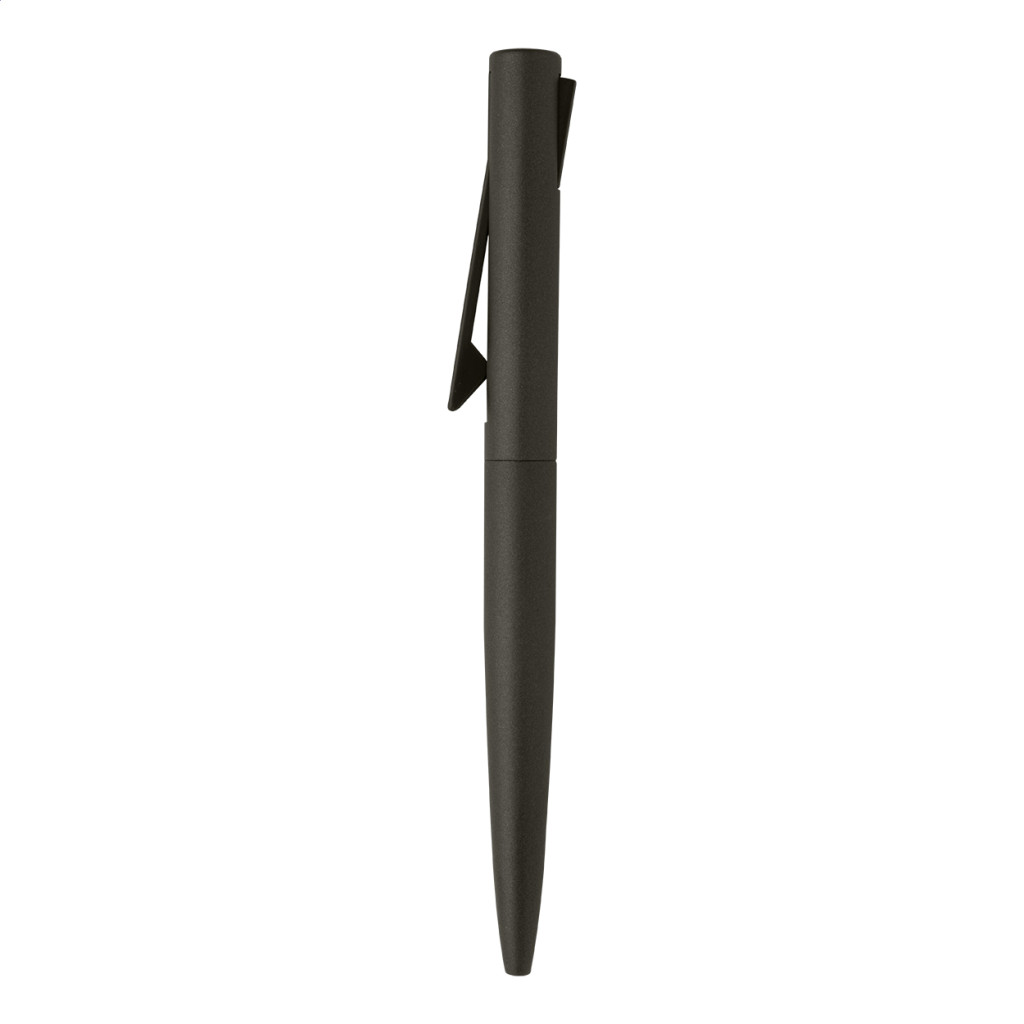 Újrahasznosított alumínium golyóstoll matt fémes színben, újrahasznosított ABS műanyag testtel és speciális klipsszel. Kék tollbetéttel szállítjuk.