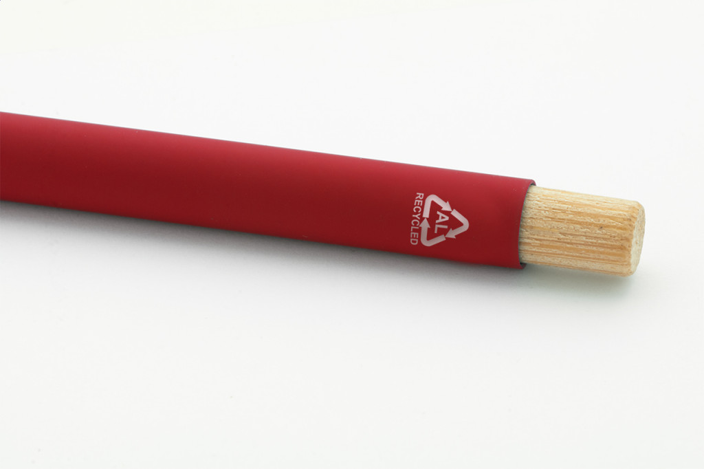 Újrahasznosított alumínium golyóstoll gumírozott felülettel, bambusz gombbal és króm részekkel. Speciális bevonattal rendelkezik, amely különlegesen fényessé teszi a gravírozott emblémát. Kék tollbetéttel szállítjuk.