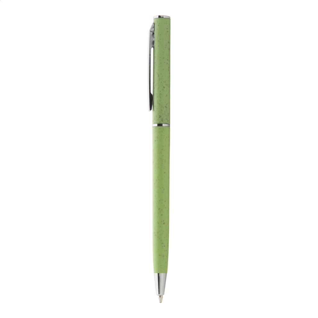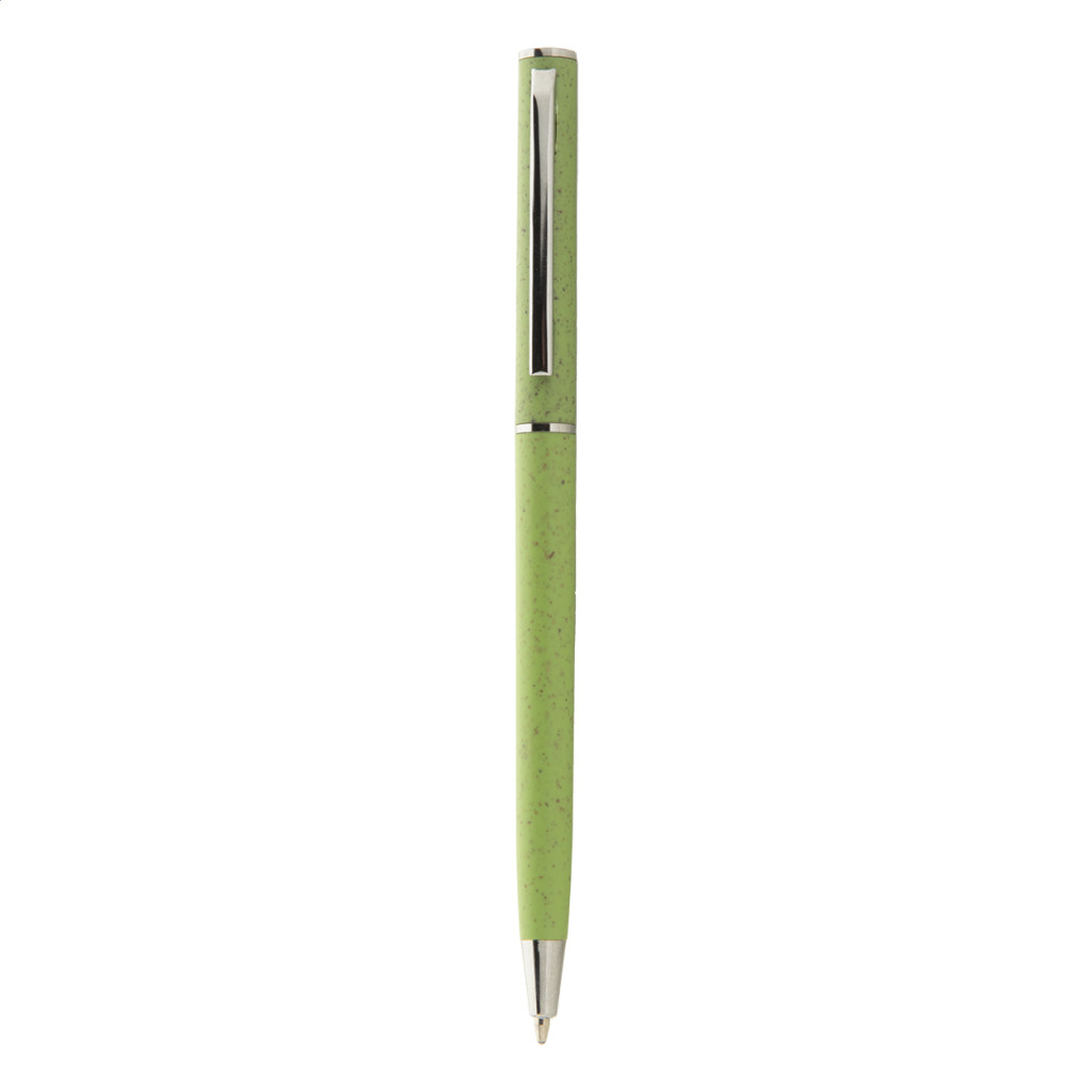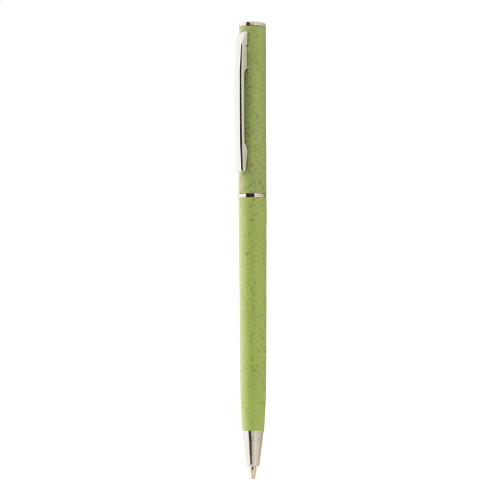 Ökológiai búzaszalma műanyag tekerős golyóstoll króm részletekkel. Kék tollbetéttel.