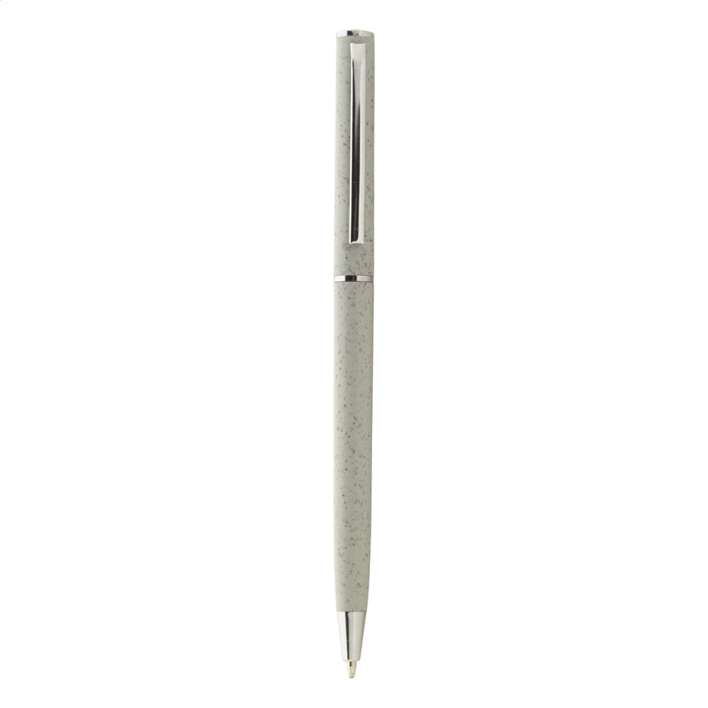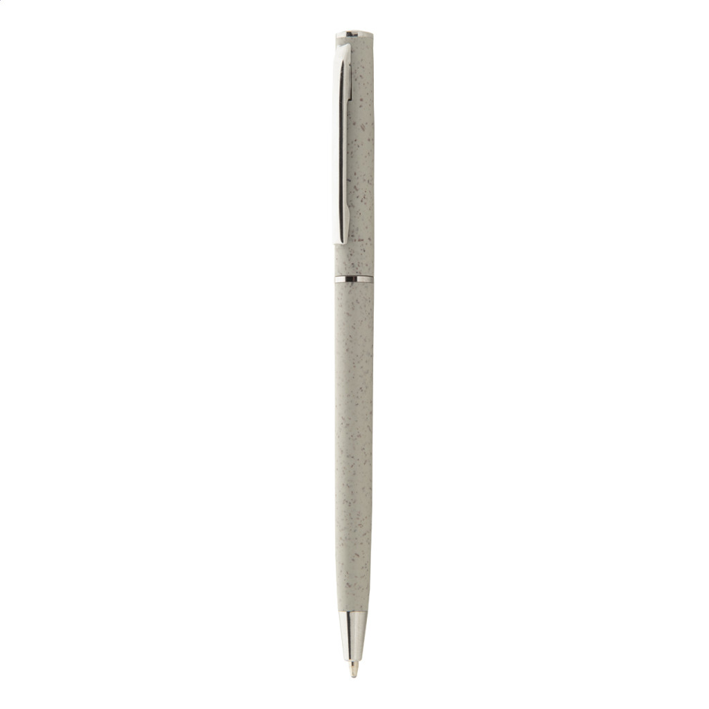 Ökológiai búzaszalma műanyag tekerős golyóstoll króm részletekkel. Kék tollbetéttel.