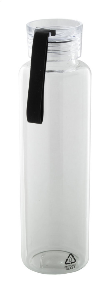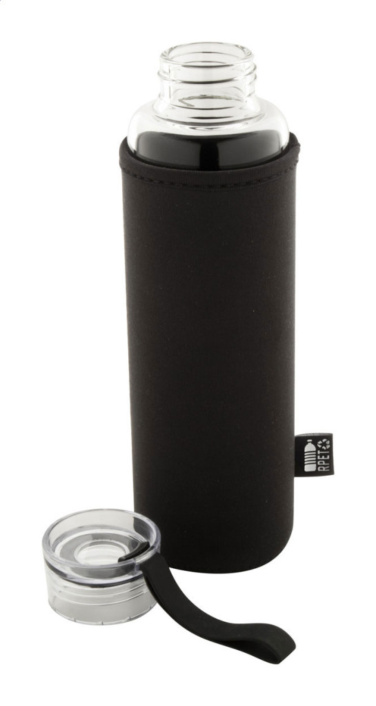 Újrahasznosított üveg kulacs PS műanyag kupakkal, szilikon hordszíjjal és RPET neoprén borítással, 550 ml. Nem alkalmas szénsavas italok tárolására.