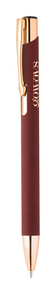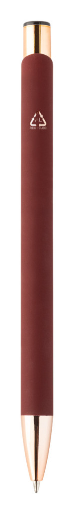 Újrahasznosított alumínium golyóstoll gumírozott felülettel és rózsaarany részekkel. Speciális bevonattal rendelkezik, amely különlegesen fényessé teszi a gravírozott emblémát. Kék tollbetéttel szállítjuk.