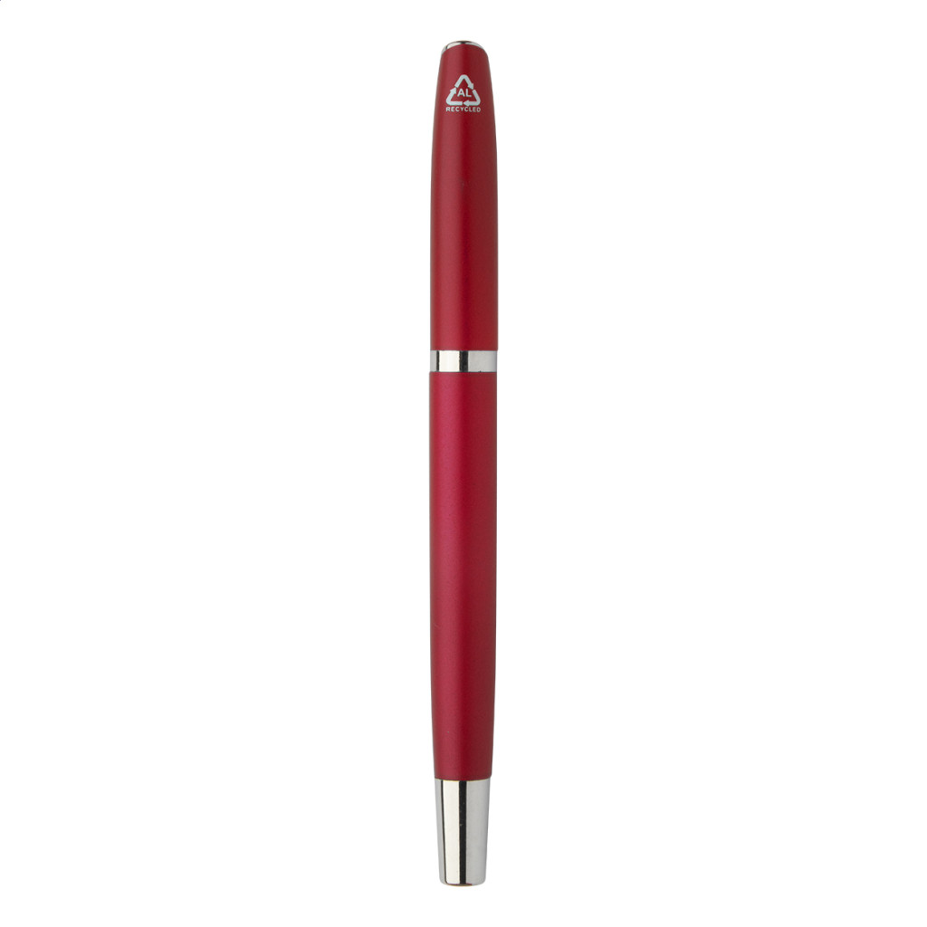 Újrahasznosított alumínium toll szett, golyóstollal és roller tollal. Fekete ajándékdobozban, kék tollbetéttel szállítjuk.