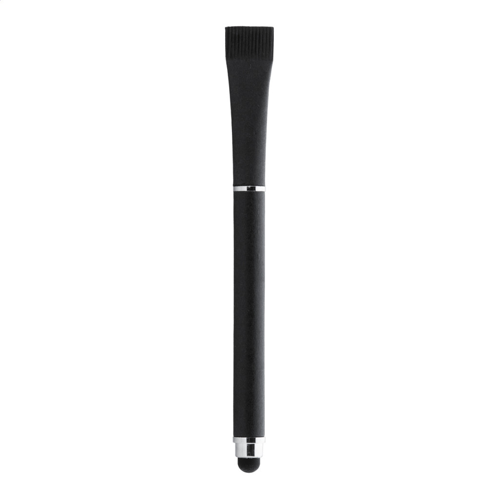 Újrahasznosított papír golyóstoll és érintőképernyős toll hozzáillő színű kupakkal. Kék tollbetéttel.