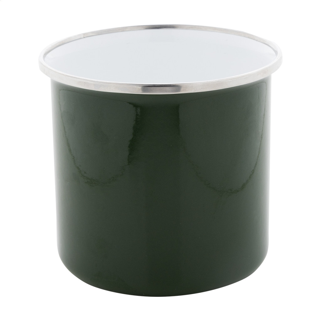 Vintage, fém zománcozott bögre rozsdamentes acél peremmel, 300 ml.