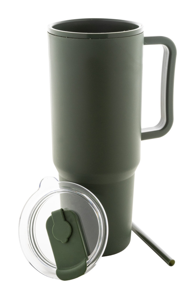 Duplafalú, PP műanyag szigetelésű thermo pohár ivófedéllel és szívószállal. 1100 ml.