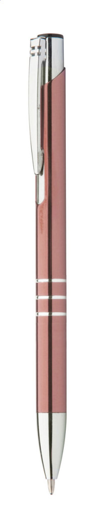 Újrahasznosított alumínium golyóstoll, fémes felülettel és kék tollbetéttel.