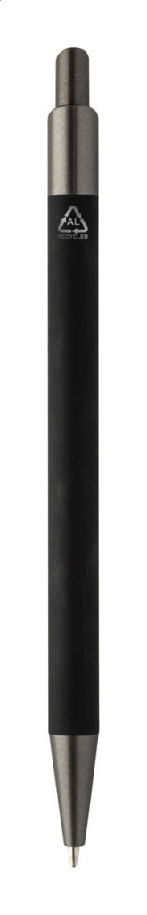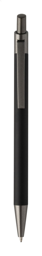 Újrahasznosított alumínium golyóstoll gumírozott testtel, fegyverfém részekkel. Kék tolbetéttel.