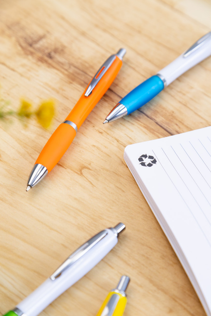 Újrahasznosított ABS műanyag golyóstoll hozzáillő színű markolattal és króm részekkel. Kék tollbetéttel.