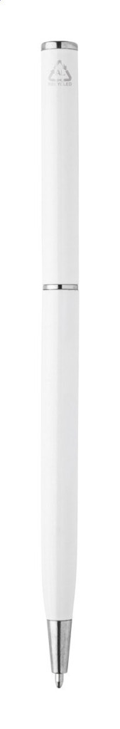Újrahasznosított alumínium tekerős golyóstoll króm részekkel. Kék tollbetéttel.