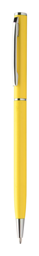 Újrahasznosított alumínium tekerős golyóstoll króm részekkel. Kék tollbetéttel.