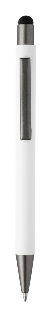 Újrahasznosított alumínium és érintőképernyős golyóstoll gumírozott testtel és fegyverfém részekkel. Kék tollbetéttel.