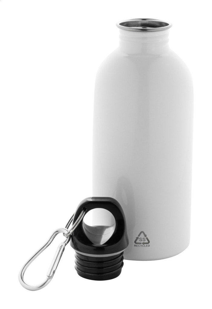 Újrahasznosított rozsdamentes acél kulacs alumínium karabinerrel, 400 ml.