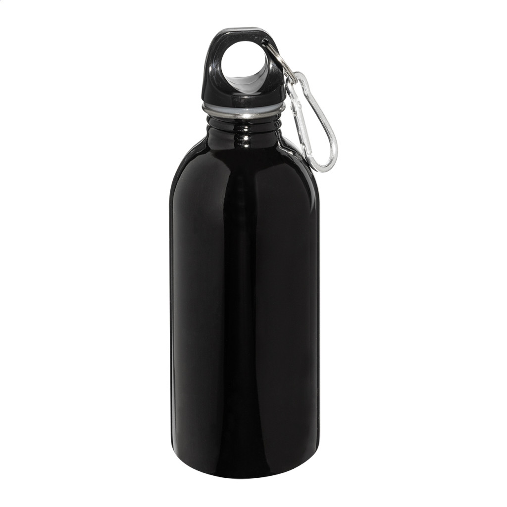 Újrahasznosított rozsdamentes acél kulacs alumínium karabinerrel, 400 ml.
