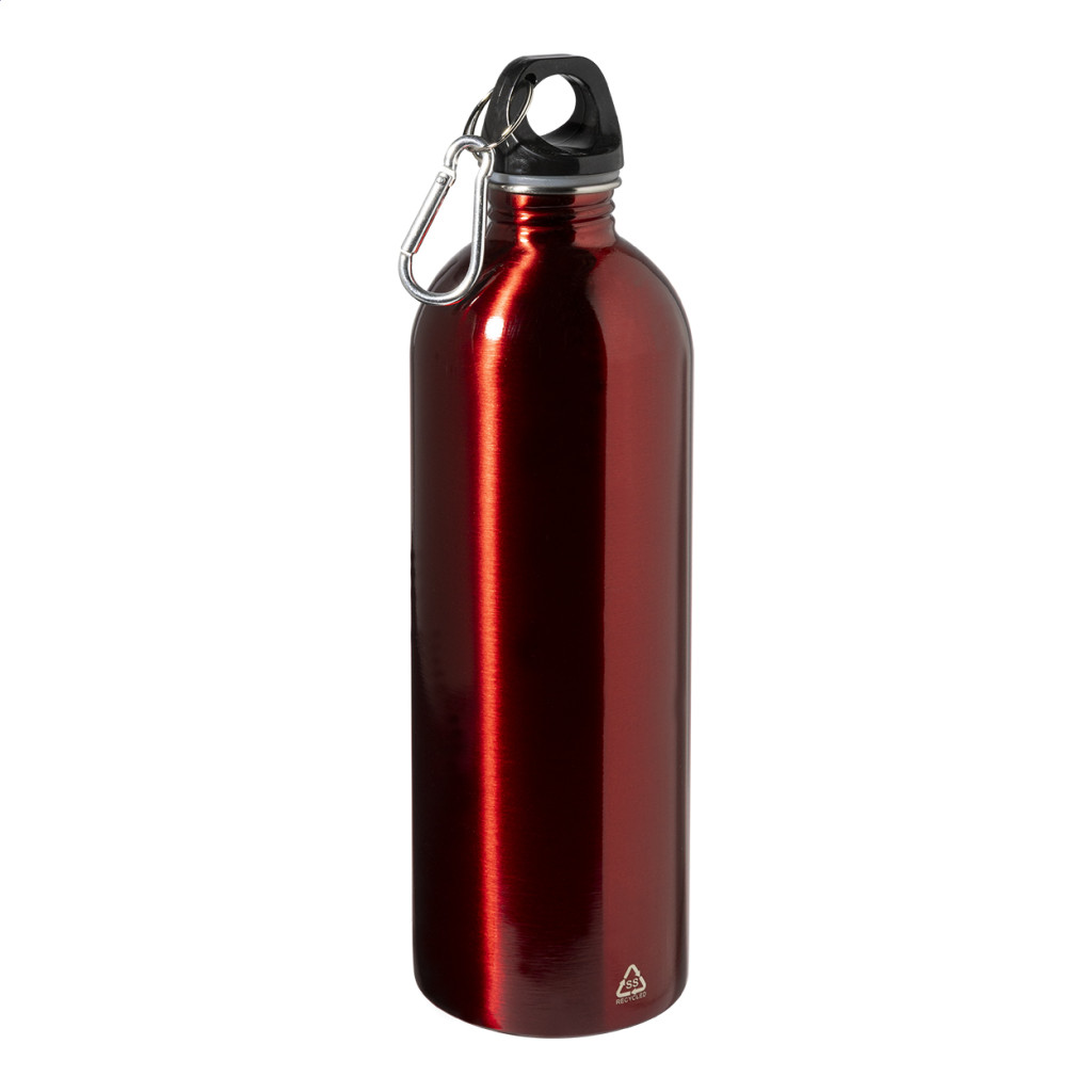Újrahasznosított rozsdamentes acél kulacs alumínium karabinerrel, 750 ml.