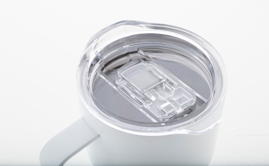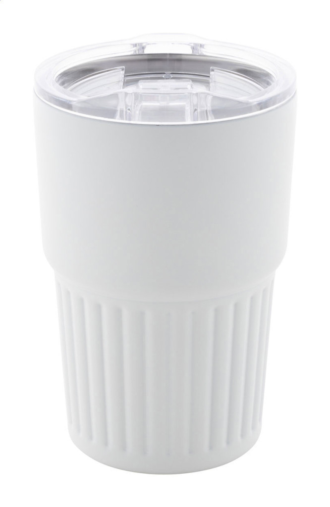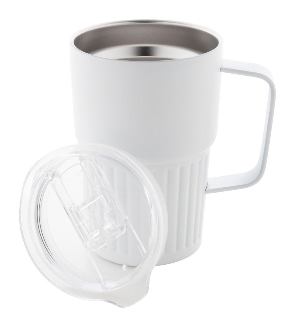 Duplafalú, újrahasznosított rozsdamentes acélból készült hőszigetelt thermo bögre ABS műanyag ivófedéllel. 470 ml.
