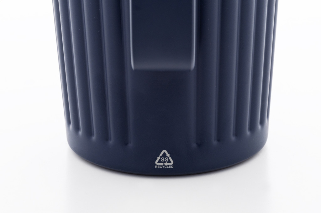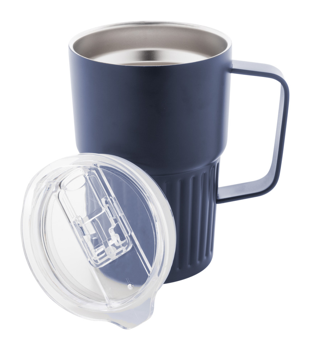 Duplafalú, újrahasznosított rozsdamentes acélból készült hőszigetelt thermo bögre ABS műanyag ivófedéllel. 470 ml.