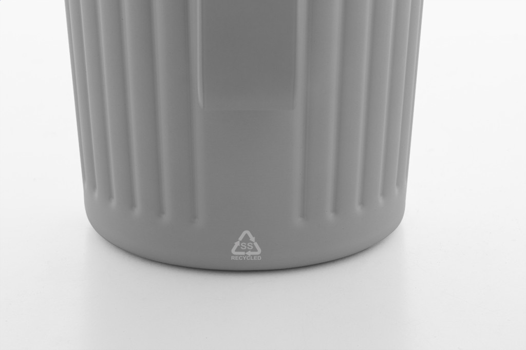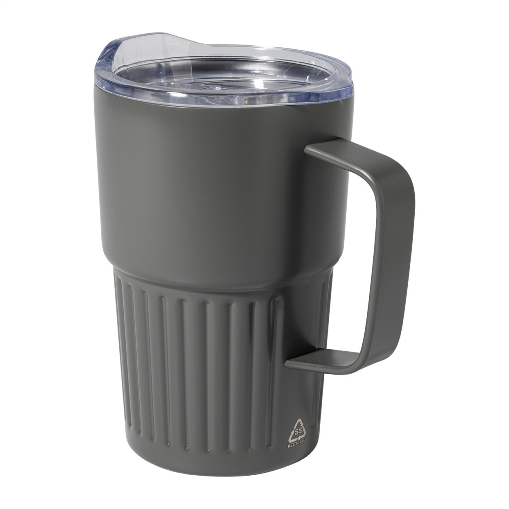 Duplafalú, újrahasznosított rozsdamentes acélból készült hőszigetelt thermo bögre ABS műanyag ivófedéllel. 470 ml.