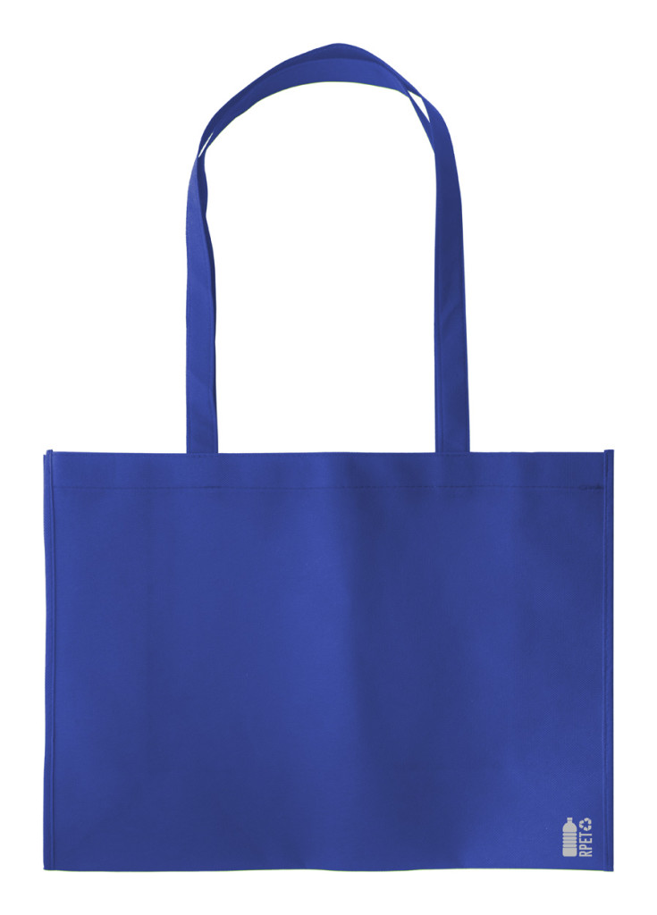 RPET non-woven bevásárlótáska, szegéllyel és hosszú füllel, 80 g/m². Megkülönböztető RPET jelzéssel.