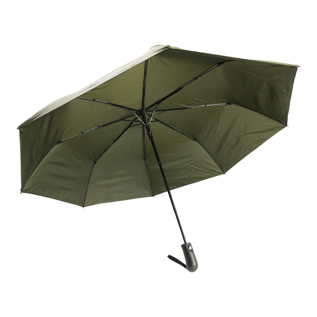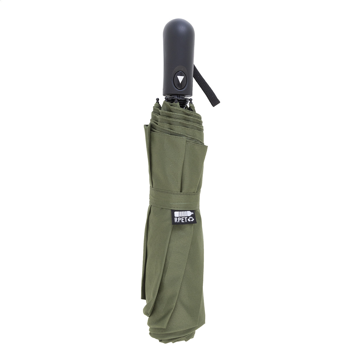 Nagy méretű, automata, szélálló és összecsukható esernyő 8 panellel, hozzáillő színű tasakban. Fém kerettel, üvegszálas bordákkal és ABS fogantyúval, kézi szíjjal. 190T RPET pongee. Megkülönböztető RPET címkével.