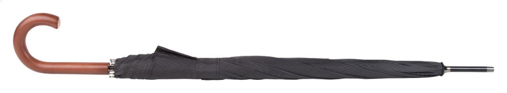 Automata, szélálló, 8 paneles, fekete-szürke csíkos esernyő fa fogantyúval, fém nyéllel és üvegszálas vázzal. Márkajelzéssel ellátott tokban szállítjuk. André Philippe márkatermék. Anyaga: 190T pongee.