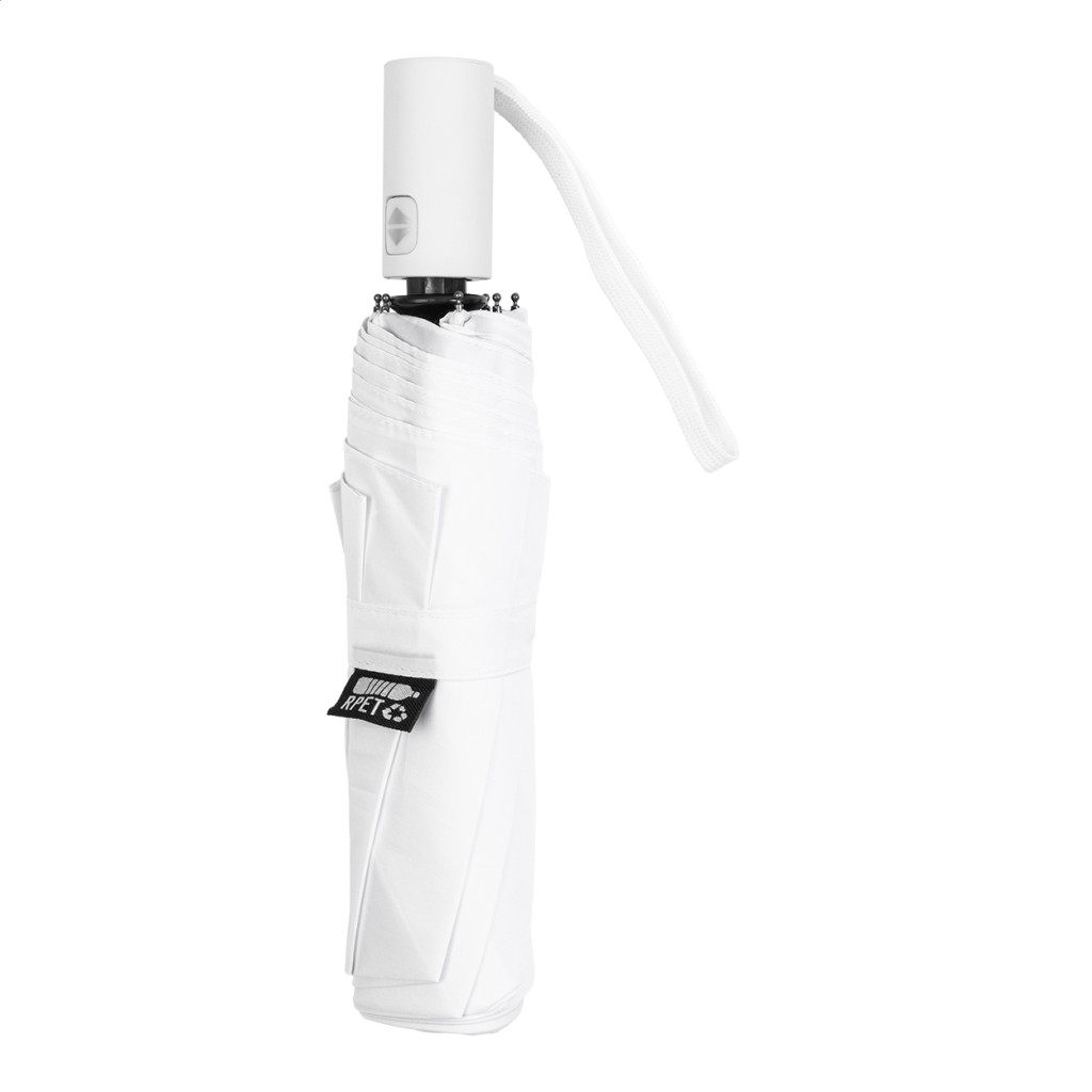Teljesen automata (nyitás/zárás), szélálló, összecsukható esernyő 8 panellel, színben megegyező tasakban. Fém kerettel, üvegszálas bordákkal és gumírozott fogantyúval. 190T RPET pongee. Megkülönböztető RPET címkével.