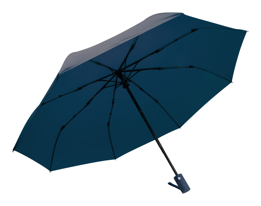 Teljesen automata (nyitás/zárás), szélálló, összecsukható esernyő 8 panellel, színben megegyező tasakban. Fém kerettel, üvegszálas bordákkal és gumírozott fogantyúval. 190T RPET pongee. Megkülönböztető RPET címkével.