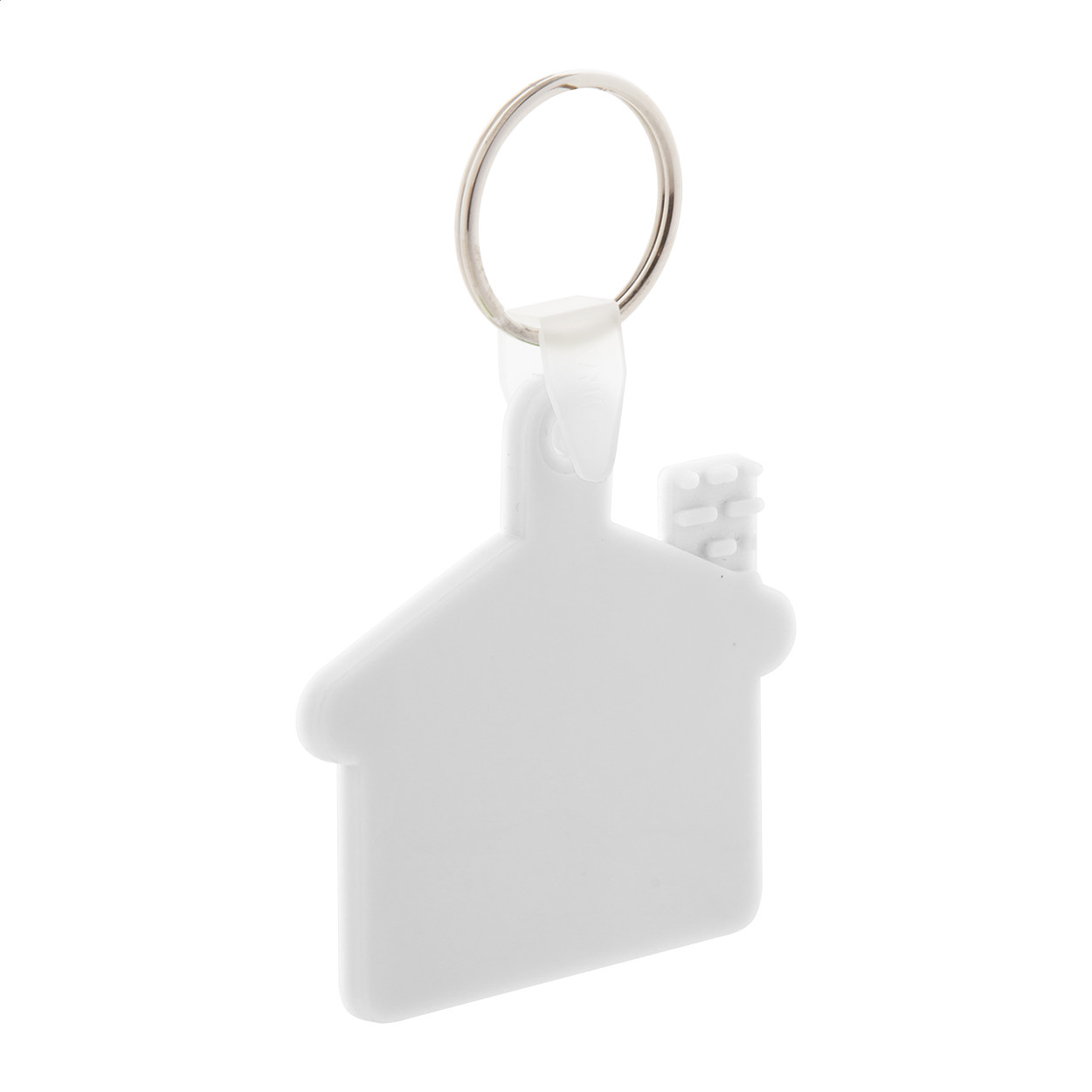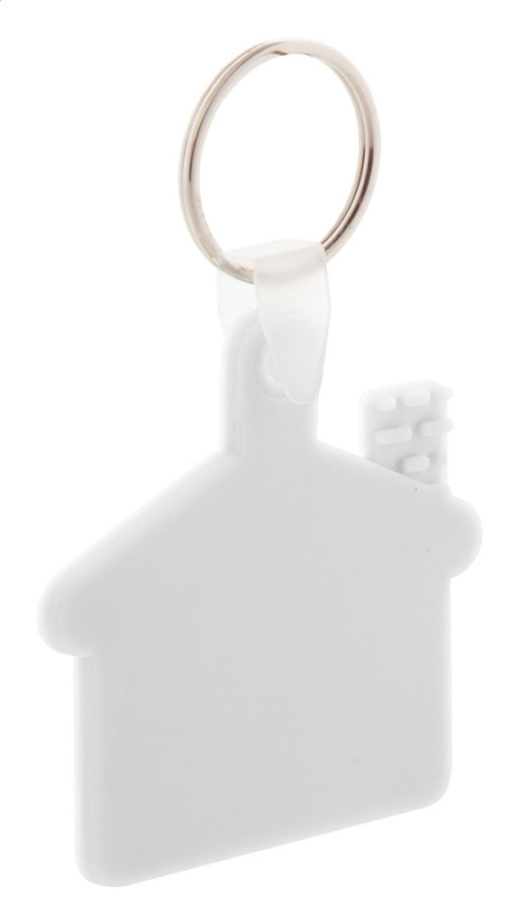 Házikó formájú, műanyag kulcstartó fém kulcskarikával.