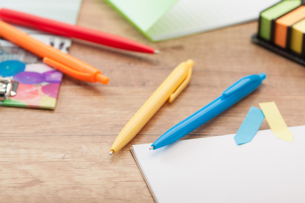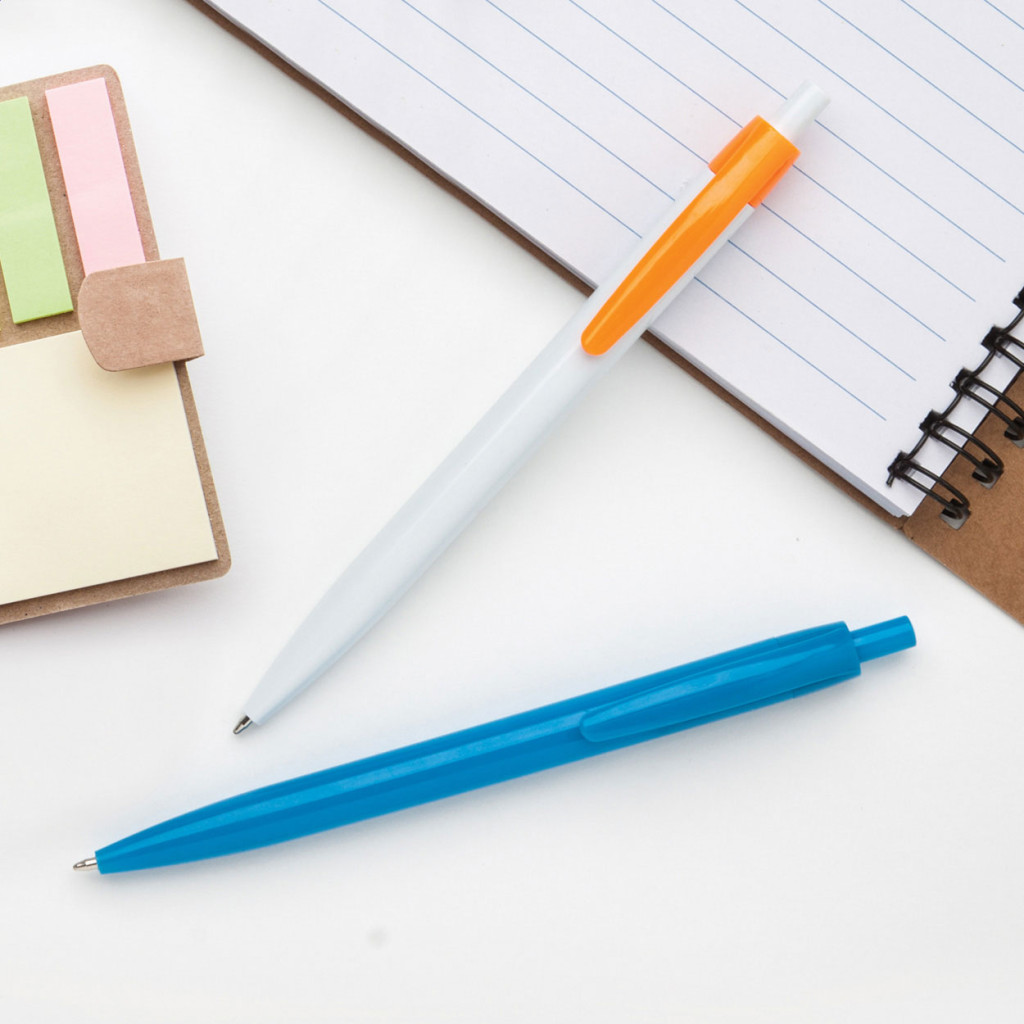 Színes, műanyag golyóstoll. Kék tollbetéttel szállítjuk.