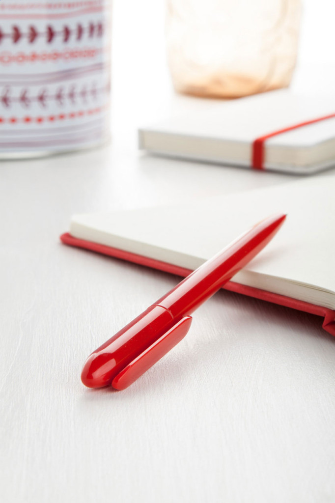 Egyszerű, műanyag promóciós golyóstoll kék tollbetéttel.