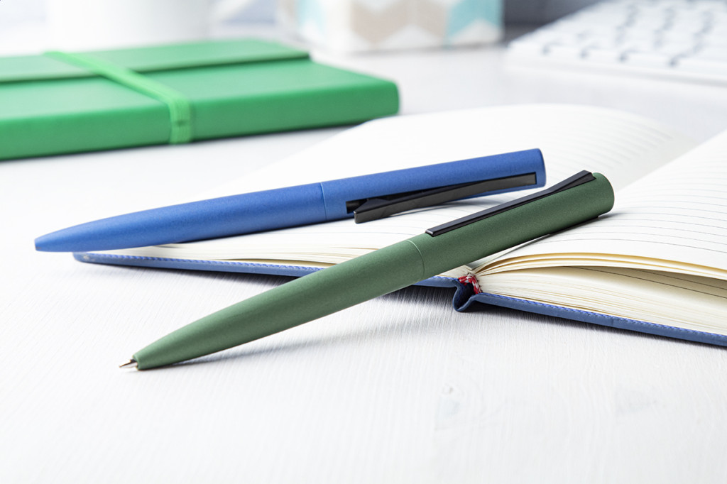 Alumínium golyóstoll matt, metál színű borítással. A toll ki-be kapcsolása egyedi módon történik. Kék tollbetéttel szállítjuk.
