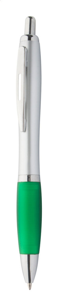 Műanyag golyóstoll színes gumi markolattal és ezüst testtel. Fekete tollbetéttel szállítjuk.